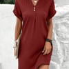 Enjoy effortless summer style with this lightweight, loose-fitting dress. Designed with a flattering V-neckline and charming button details, it offers the perfect blend of comfort and laid-back elegance for sunny days and comfortable outings.