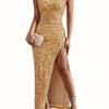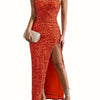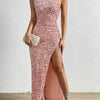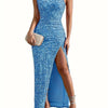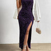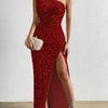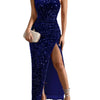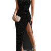 Elegant One-Shoulder Sequin Maxi Evening Dress with Slit