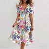 The Flowy Floral Summer Dress (Knee-Length) dress is a breezy and elegant summer essential that effortlessly combines comfort and style. Featuring a flattering A-line silhouette, soft fabric, and a playful floral print, it's perfect for warm days, vacations, or a comfortable chic look. The V-neckline and short sleeves add a fresh, feminine touch.