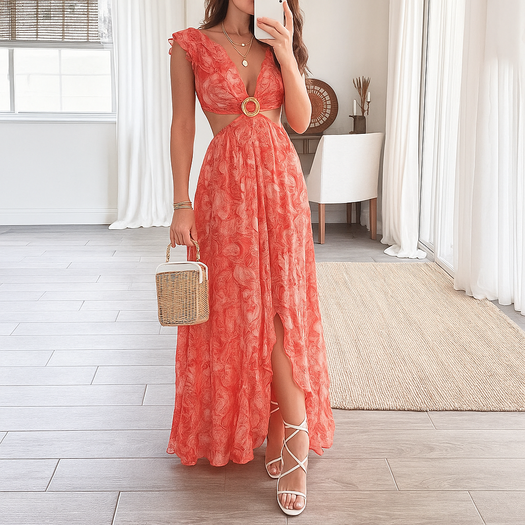 Floral Print V-Neck Maxi Dress