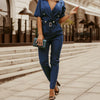 The Eleganza jumpsuit is a refined piece that seamlessly blends sophistication and comfort. Featuring a tailored silhouette with a notched lapel collar and a deep V-neckline, this jumpsuit is designed to flatter and impress. The included belt cinches the waist, enhancing your figure, while the half sleeves and sturdy polyester fabric provide a polished and stylish appearance.
