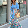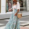 Add a touch of bohemian charm to your wardrobe with this elegant long floral skirt. Its flowing fabric and vibrant floral print make it perfect for warm summer days, beach outings, or comfortable gatherings.
