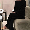 Designed for everyday wear, this two-piece knit set features a long-sleeve sweater paired with matching trousers for a coordinated winter look. The knit texture adds a seasonal touch, while the relaxed silhouette suits home routines, errands, or casual outings.