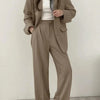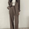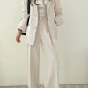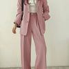 ✔️ Flattering Fit – Designed with a structured blazer and matching wide-leg trousers that enhance your silhouette while offering a relaxed feel.