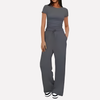 This 2‑piece lounge set is designed for relaxed days and casual outings, featuring wide leg pants and a crop top with side ruching for subtle style. The coordinated set creates a cohesive look that’s simple to pair with sneakers or sandals, making it ideal for everyday wear or travel.