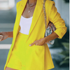 Make a bold impression with this elegant two-piece set that combines a sleek blazer with high-waist shorts. Designed for the style-conscious woman, it's perfect for both business and comfortable occasions.